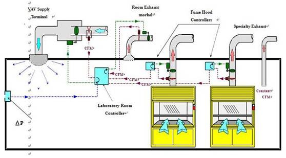 實驗室通風系統一般由通風設備、通風管道、消聲器、風機、控制系統組成。